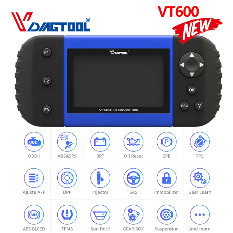 Excellent - VDIAGTOOL VT600 Key Programmer OBD2 Automotive Scanner Diagnostic Tool Engine ABS SRS EPB Oil Service Reset Injector Coding